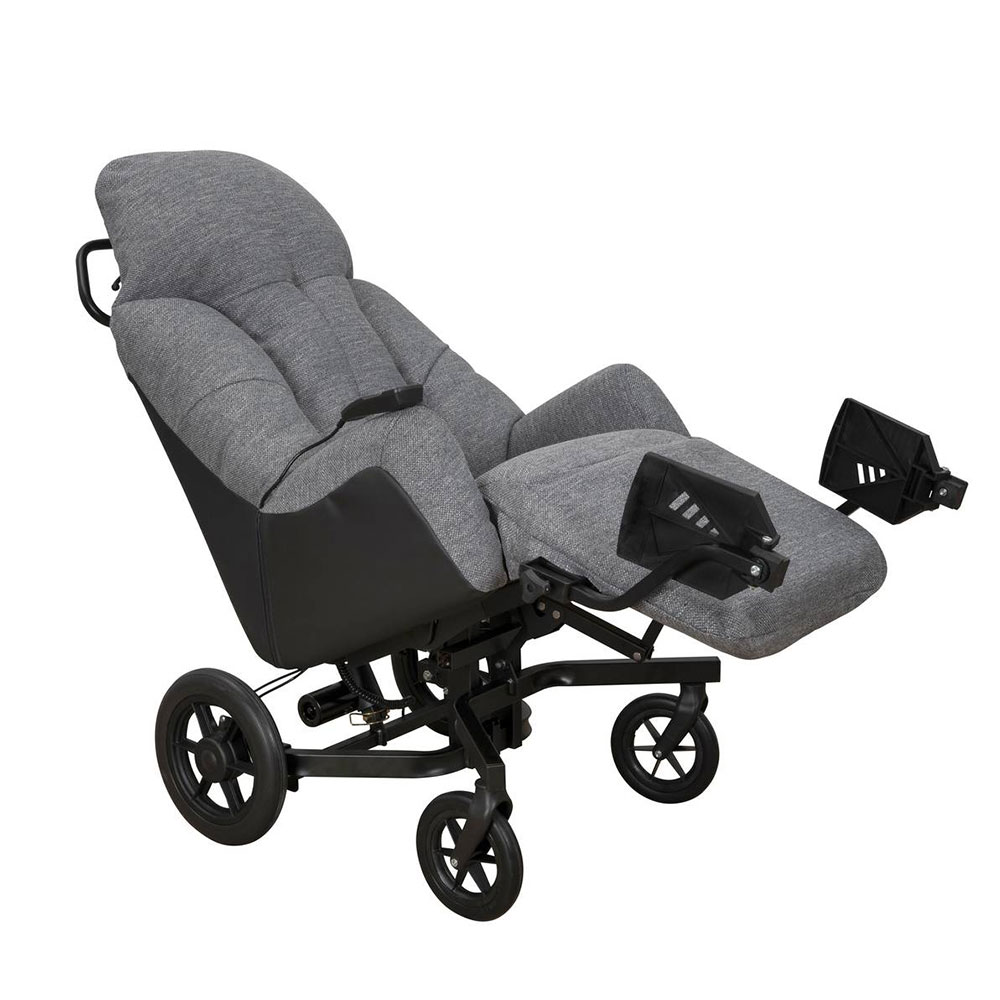 - en position semi allongée, le repose-jambes se trouve dans l’alignement de l’assise pour un plus grand confort. C’est essentiellement grâce à ce repose-jambes dont le déploiement est lié à l’inclinaison du fauteuil.