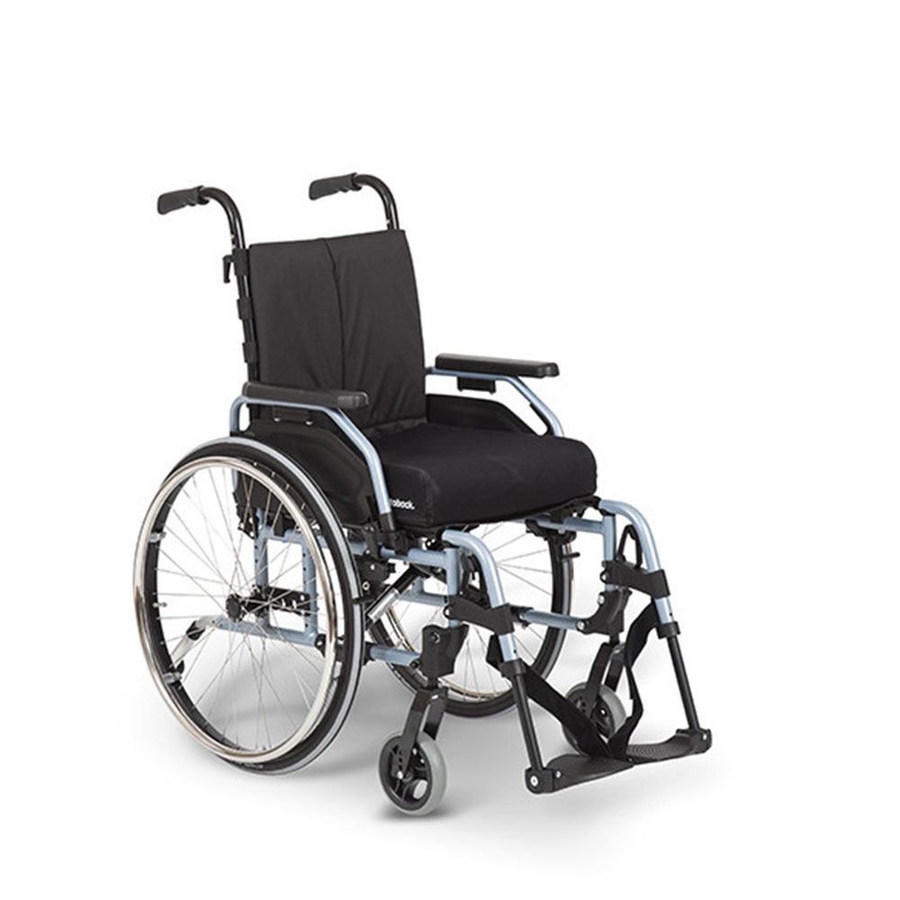Le dossier rabattable se verrouille sur l’assise (verrouillage passif) ce qui facilite la manipulation du fauteuil lors des transferts.
