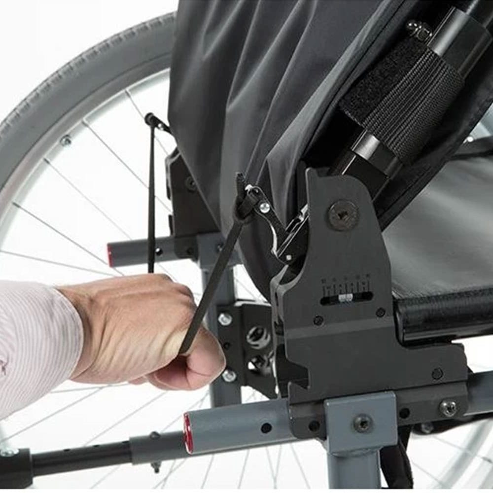 Replié, sa largeur n’excède pas les 29 cm ce qui en facilite le transport et le stockage dans presque tous les coffres de voitures. Son dossier peut être rabattu sur l’assise (en option) et ses roues arrière sont démontables.